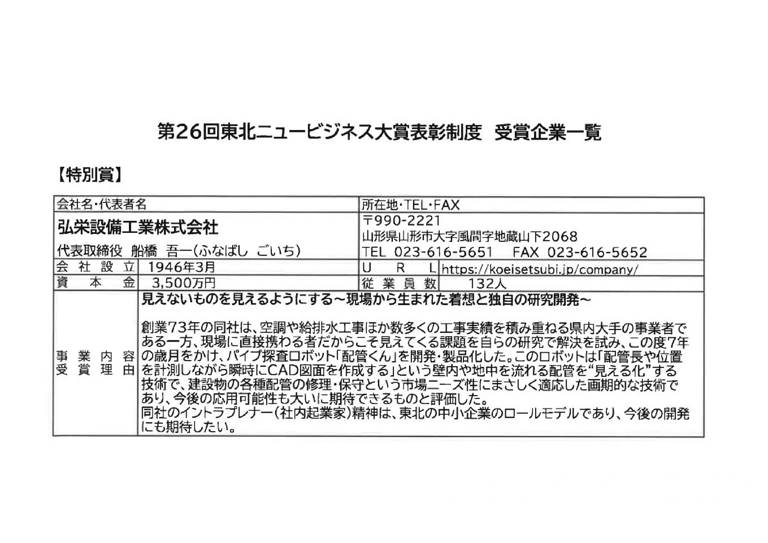 第26回東北ニュービジネス大賞詳細